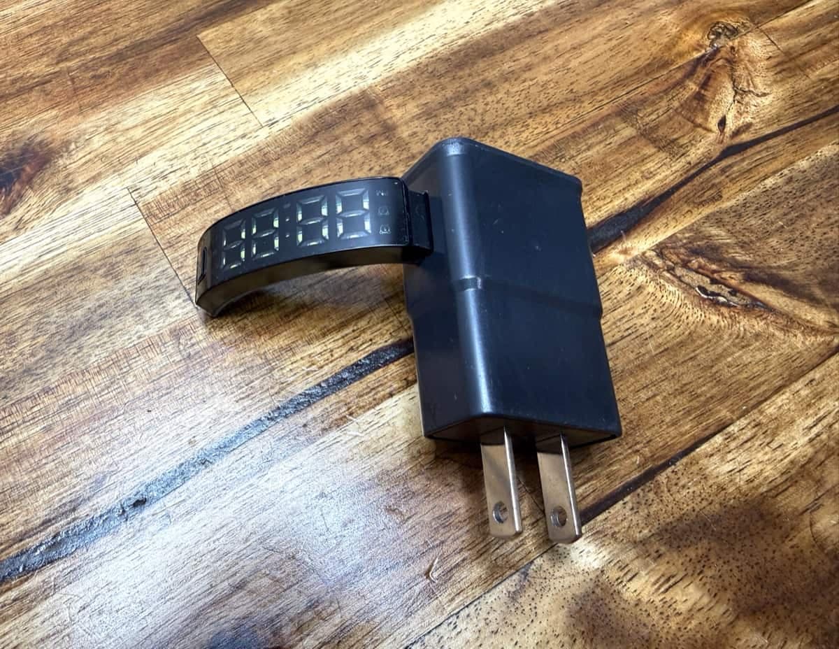 The FitSleeps wearable alarm is a small vibration motor and digital module that sits inside a wrist strap. It’s marketed as a “premium alarm” for people who sleep through sound-based alarms or want to wake without bothering others. The module shows the time and date, lets you set up to three alarms, and vibrates on your wrist when an alarm goes off.