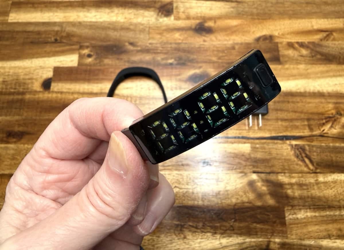 Setting the time and alarms is straightforward but a little fiddly because the FitSleeps uses a single small button under the module to cycle and set values. Press the button to view the time and date; hold it down to enter time-setting modes and to configure up to three alarms. The display is very bright when the module is out of the strap, though dimmer once seated inside the band.