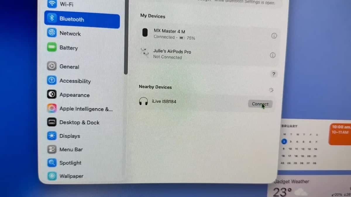 Pairing the iLive ISB184B with my MacBook was fast and painless. Power on, open your device’s Bluetooth settings, and select the speaker. The unit announced its mode and the MacBook connected immediately. Bluetooth 5.4 is listed in the specs along with a 33‑foot range, which is more than adequate for desktop use and small rooms.