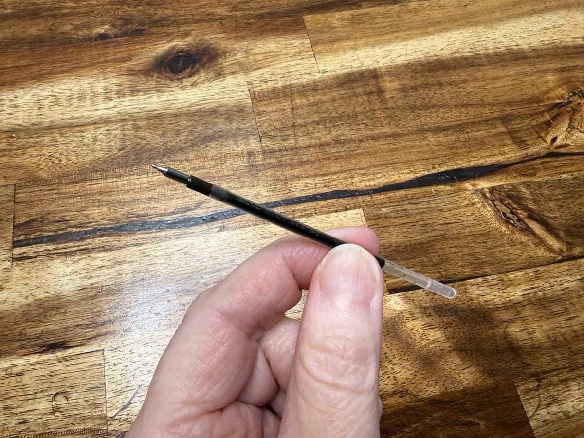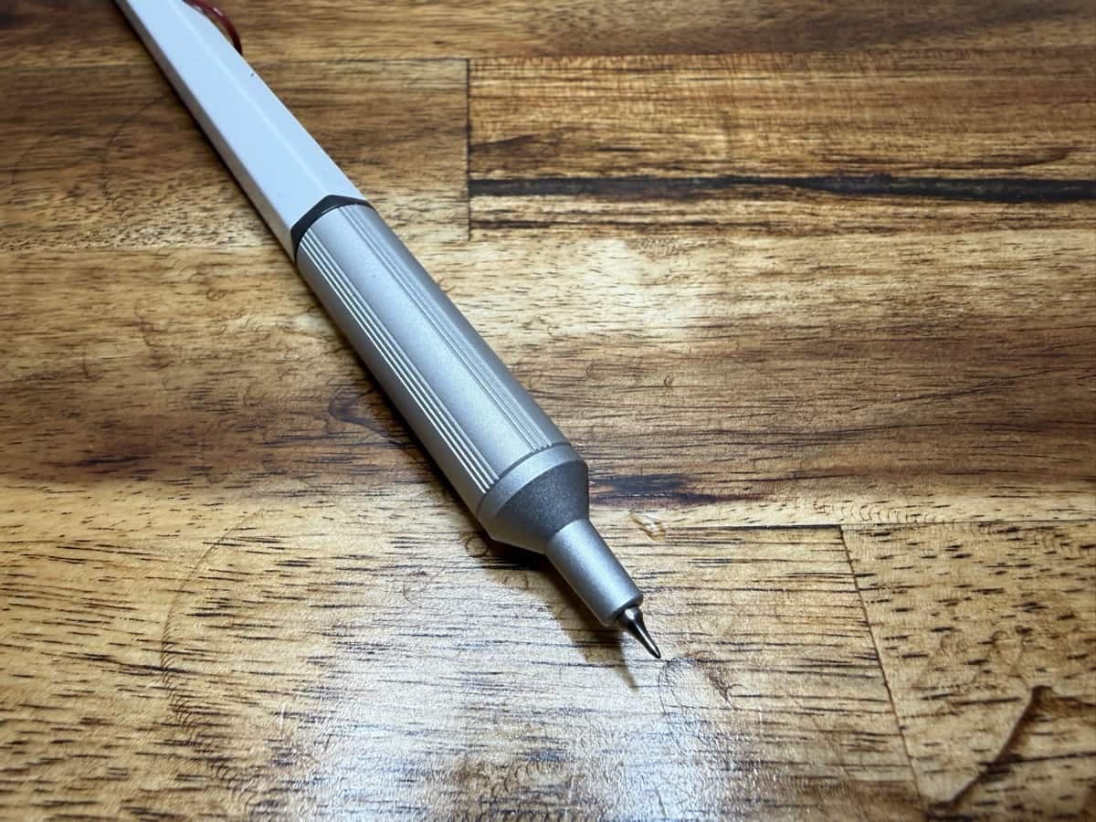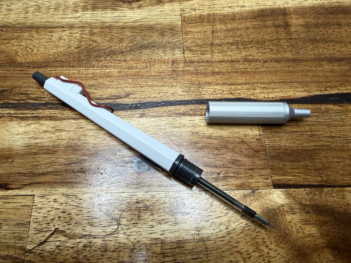 Changing the refill requires unscrewing the aluminum grip and pulling the refill out of the barrel. The refill sits snugly and needs a firm push to reseat it when reinstalling. It can feel a little scary the first time you pull it out, but it’s straightforward once you’ve done it. The Jetstream refills are widely available, and if you prefer a bit more line width you can opt for the .38mm model instead.