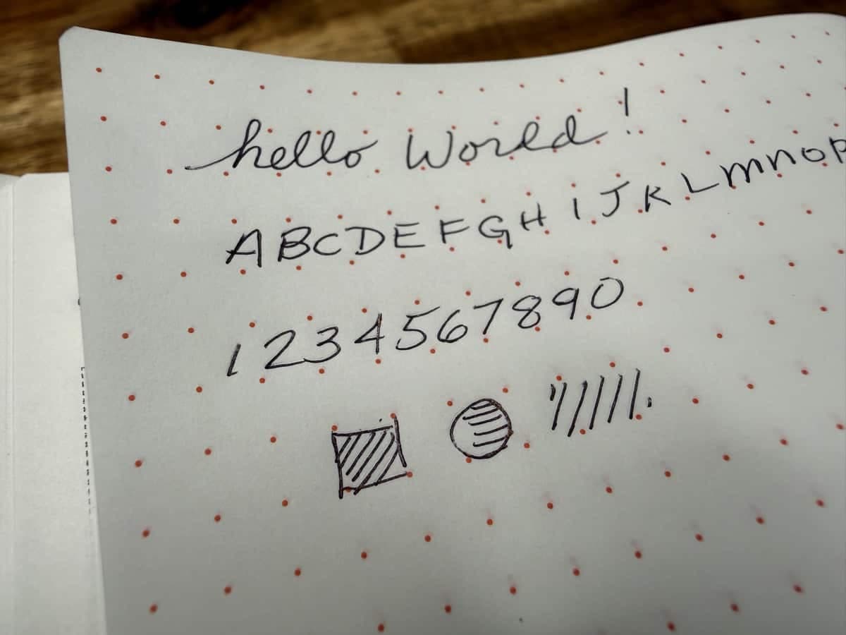 I tested the Uni Jetstream Edge in a Hobonichi Techo (Tomoe River paper). The .28mm tip feels a touch scratchier than the .38mm Uniball One gel pen that I normally use, which is partly due to the fine point contacting the paper more directly. That said, it still writes cleanly and produces a crisp, very fine line.